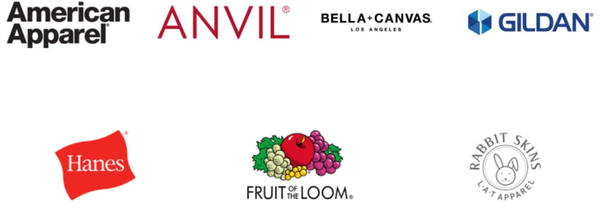 Our assortment of high-quality products includes t-shirts, tank tops, long sleeve shirts, hoodies, baby bodysuits, caps, bags, backpacks, aprons, and even dog bandanas, all from top brands.